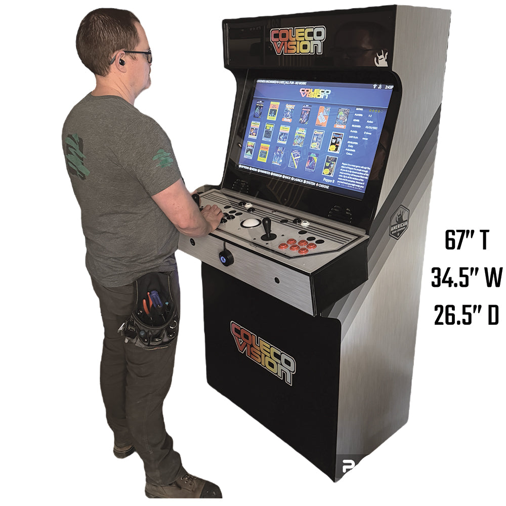 This arcade cab is full size! Measuring 26.5" Deep, 34.5" Wide and 67" Tall there is plenty of room for two grown adults to play.